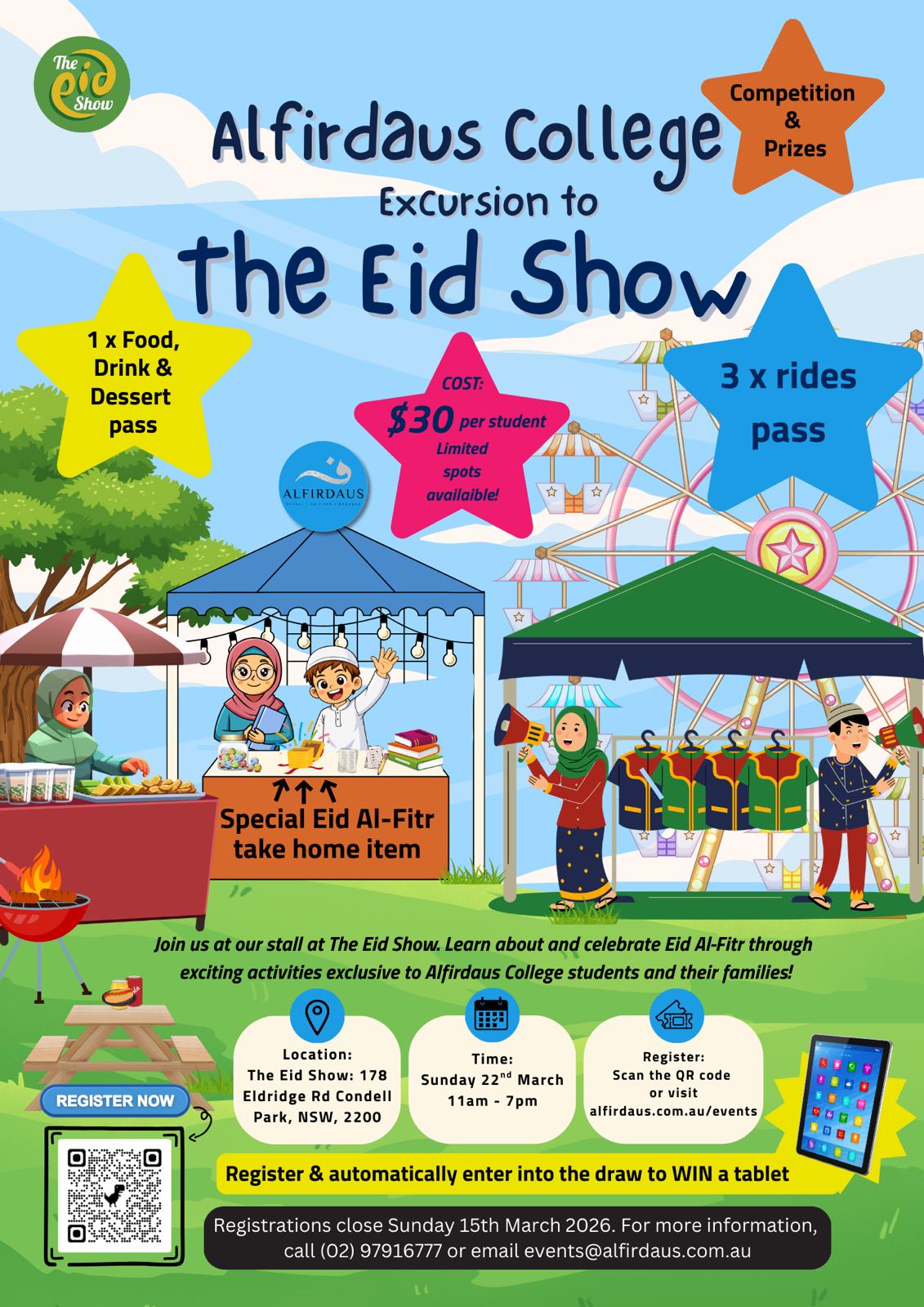 Join us at our stall at The Eid Show! Learn about and celebrate Eid Al-Fitr through exciting activities exclusive to Alfirdaus College students and their families! Including: