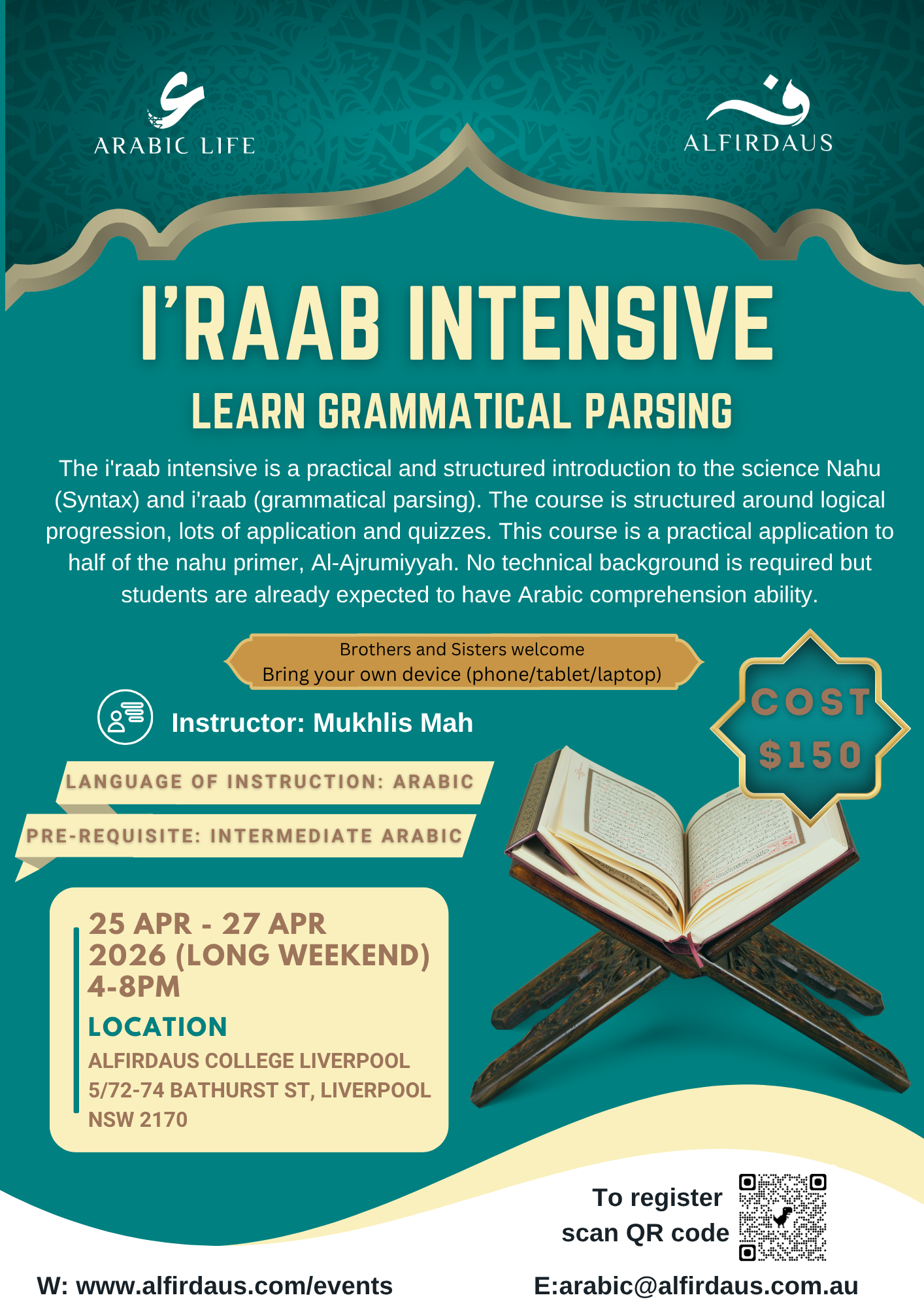 Don’t miss this opportunity to sharpen your Arabic grammar skills and prepare for the next step in your Arabic learning journey. Register now and secure your spot!