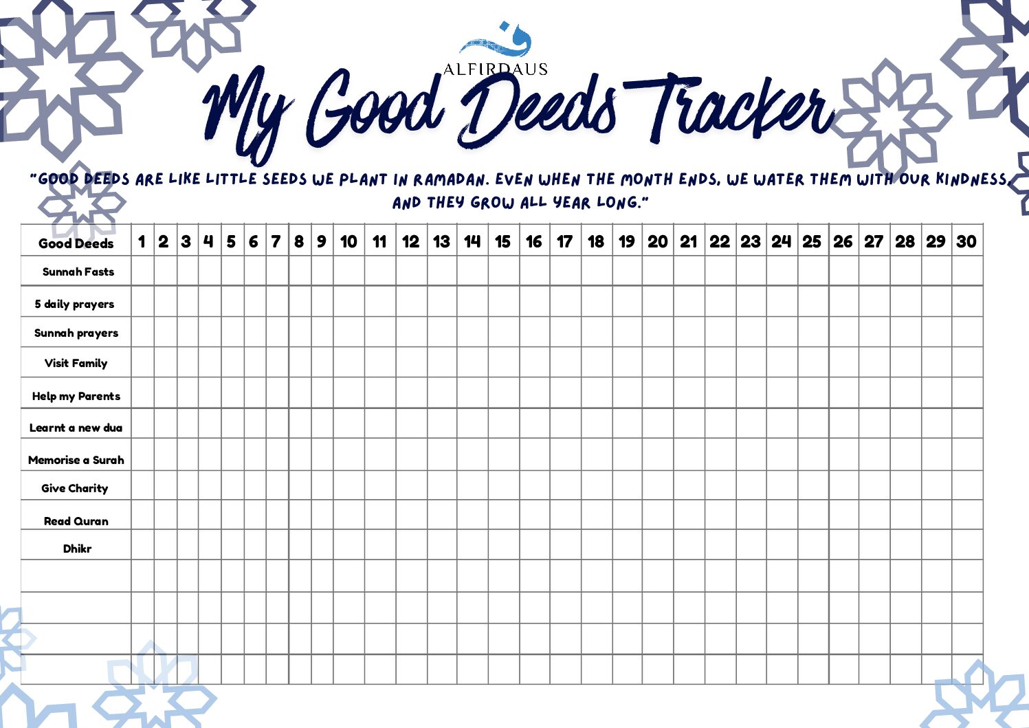 2025 Ramadan activity: Good Deeds Tracker for Early Learners and Foundation 1-4